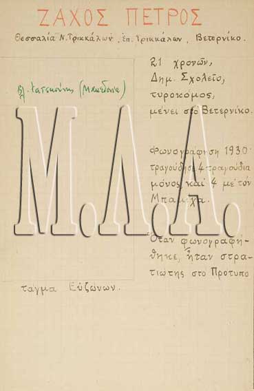 Πέτρος Ζάχος, Βετερνίκο - Τρίκαλα (Ηχογράφηση 1930)