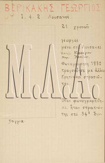 Γεώργιος Βερικάκης, Λουσακιές - Χανιά Κρήτης (Ηχογράφηση 1930)
