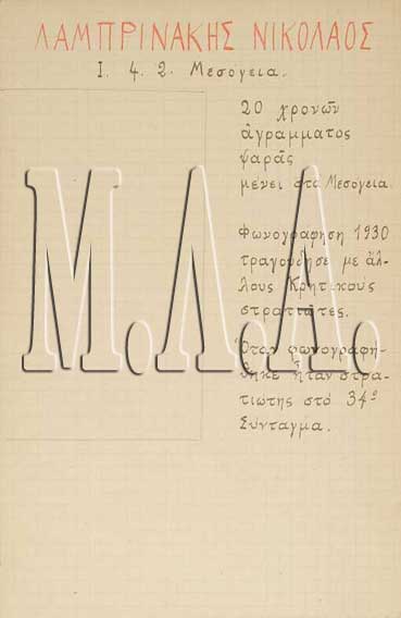 Νικόλαος Λαμπρινάκης, Μεσόγεια (Ηχογράφηση 1930)