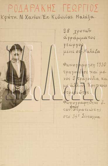 Γεώργιος Ροδαράκης, Μαλάξα - Χανιά (Ηχογράφηση 1930)